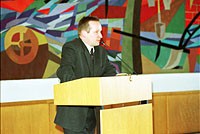 BI-Specher Jörg Stark vor dem Stader Kreistag (Friesenspießresolution 26.2.01) (*) |